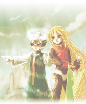 ロックマンゼロ4でもって、結局エックス救済がなかったことに落ち込んだわけで。このままゼクスに行くのか……。そんなこんなで、ED後にふたりでふらふらハンターツアーでもしててくれるといいなぁ、という妄想絵にそれと全然関係のない駄文をつけてみた。
