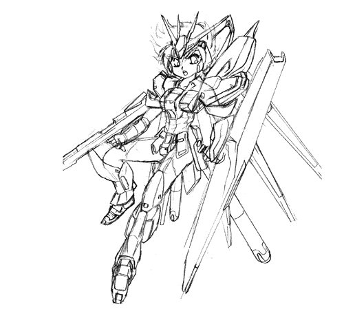 下絵はフィギュアモデラーさんや3Dレンダリングモデラーさんのサイト、MGν用の改造パーツのweb広告ページなどを参考に描き描き。(三次創作と言われても否定できない……)