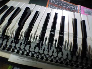 錘を埋め込んだキートップ、白鍵と黒鍵です。これを鍵盤シャーシに取り付け直し、鍵盤の改造は終わりです。 |